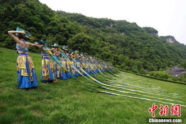 5月3日,湖南張家界武陵源黃龍洞風(fēng)景區(qū)的青年員工身著盛裝,上演了一場(chǎng)精彩的苗族頭帕秀,喜慶五四青年節(jié)的到來(lái)。